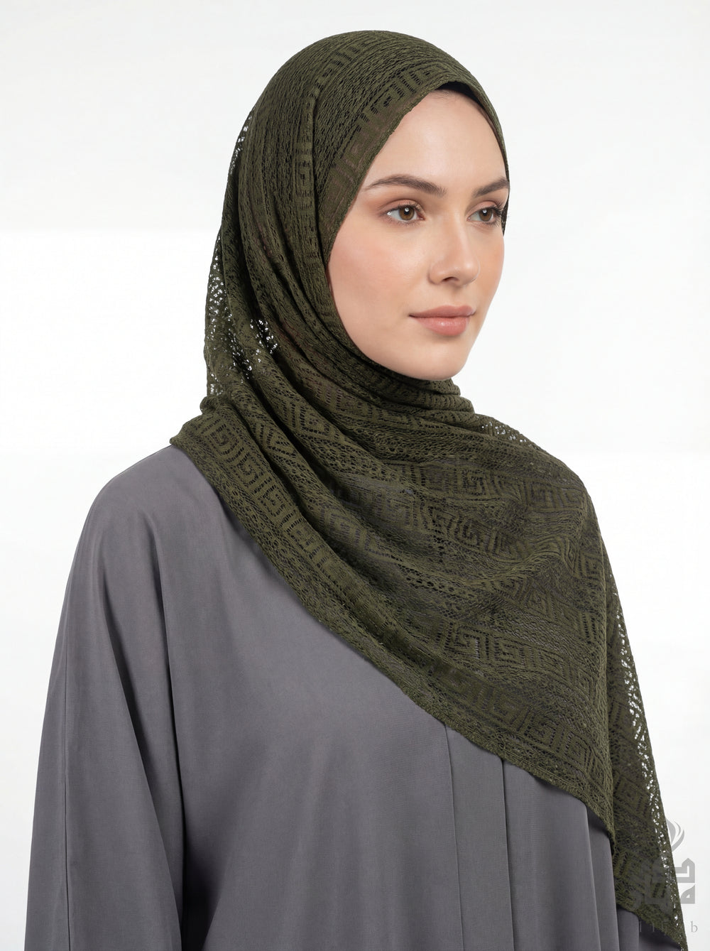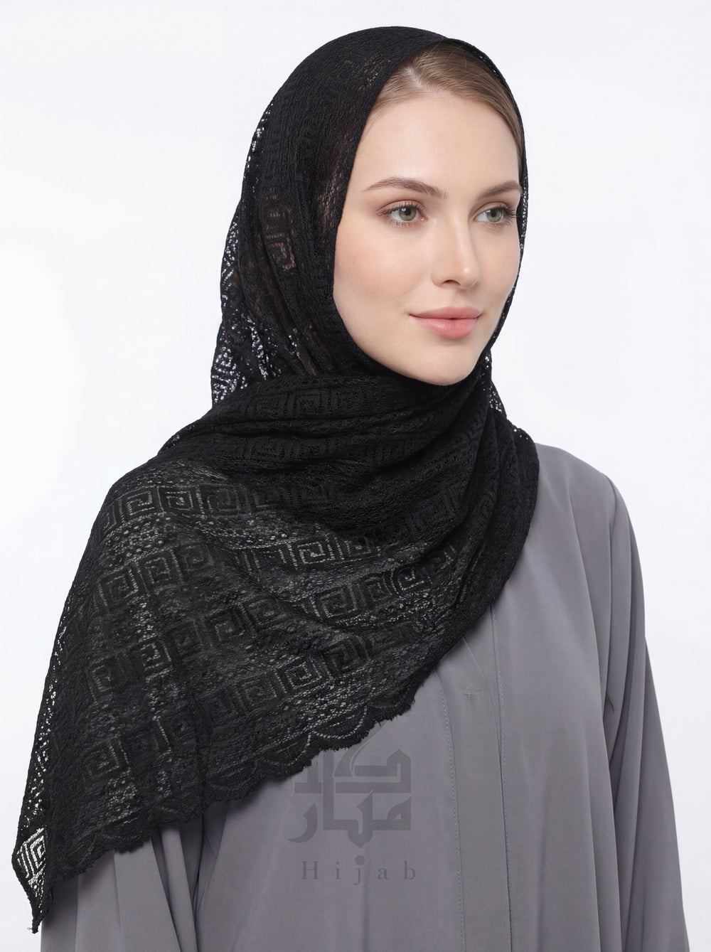حجاب بتصميم الدانتيل المربع قطعة فاخرة مميزة، مصنوع من أجود أنواع الدانتيل الناعم بنقشة هندسية دقيقة. صُمم هذا الحجاب حصرياً لعلامة مباركة للحجاب، ليضفي لمسة من الأناقة العصرية الراقية على أي إطلالة.